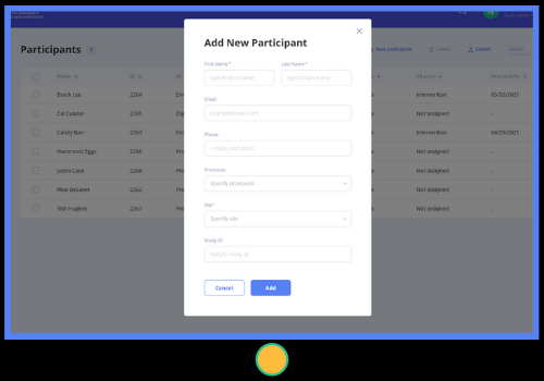 - Specify study details, milestones for each arm or treatment group, site specific email addresses, automated notifications (email/text/push), and custom fields