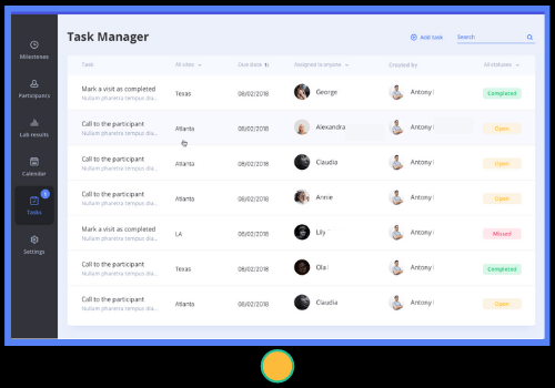 - Create internal tasks to assist with day to day study management